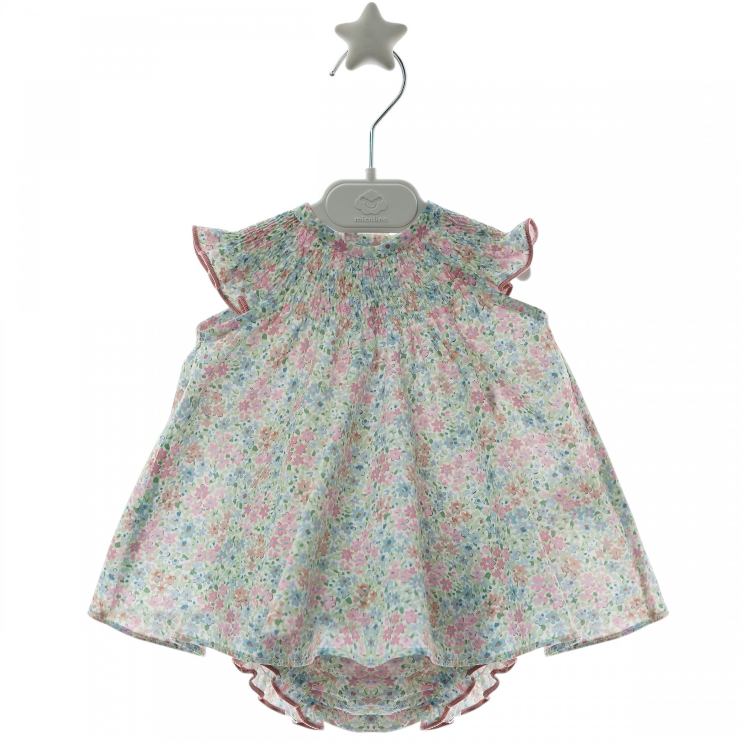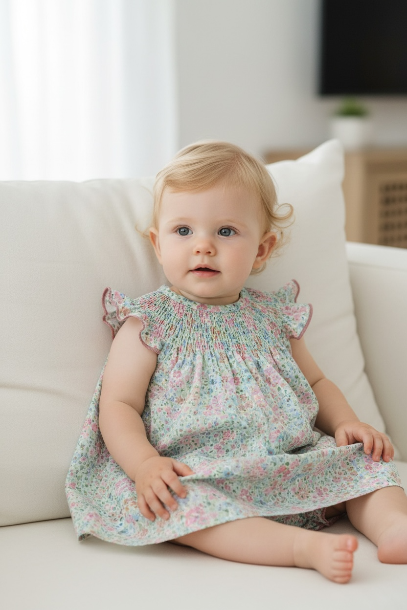 Anna Family baby set in a soft floral print fabric, perfect for spring and summer days.