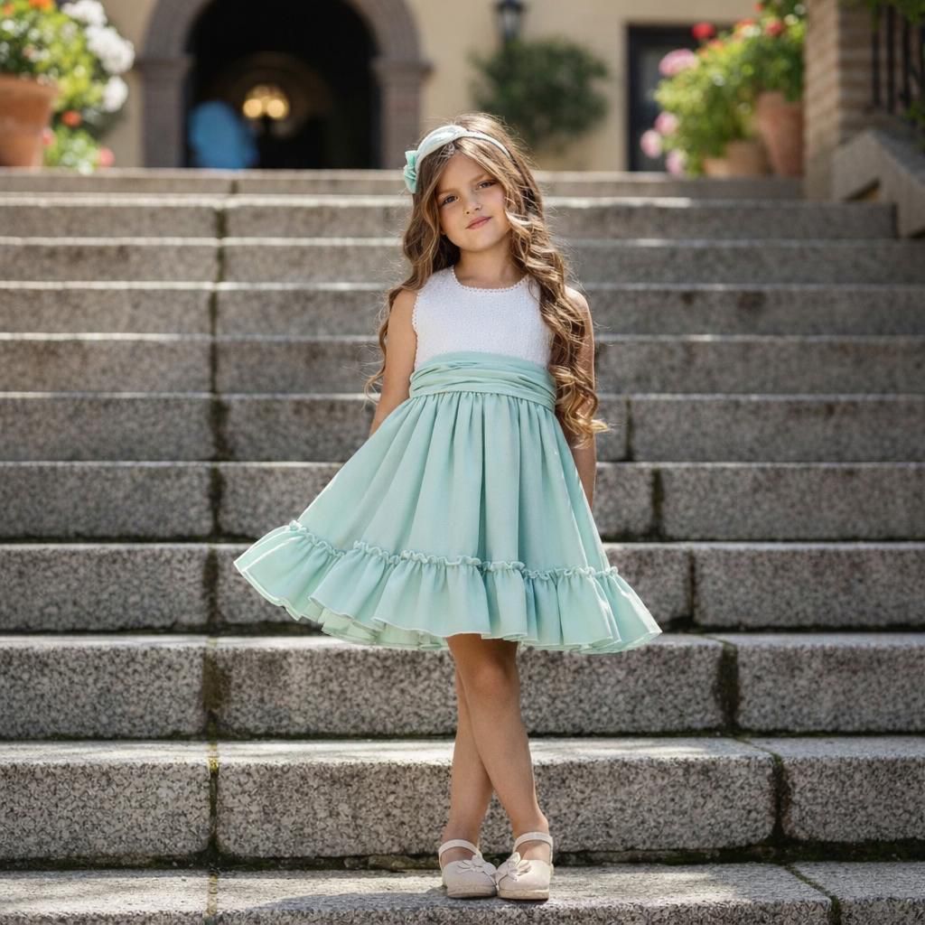 A girl's dress from the Azahar collection, featuring a delicate and elegant design perfect for special occasions.