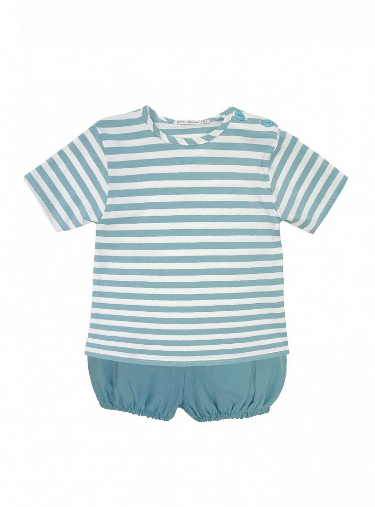 Beige and cobalt striped t-shirt with matching canvas bloomers