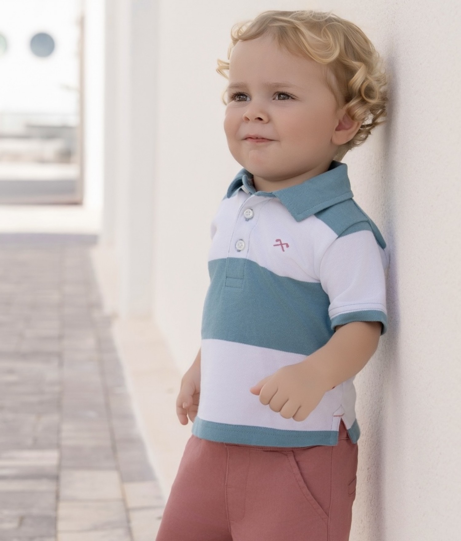 Baby boy polo shirt with turquoise stripes