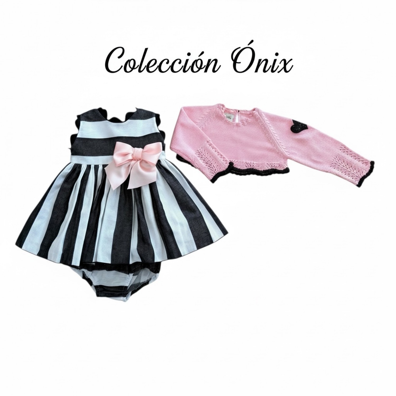 Baby dress with bloomers and sweater. Onyx Collection
