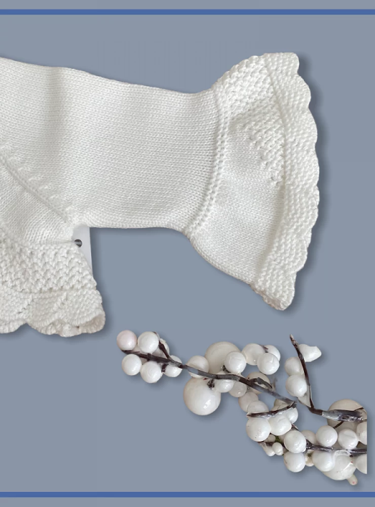 It is halftime. Short bolero with sleeves below the elbow. It's very original. For christening or ceremony.