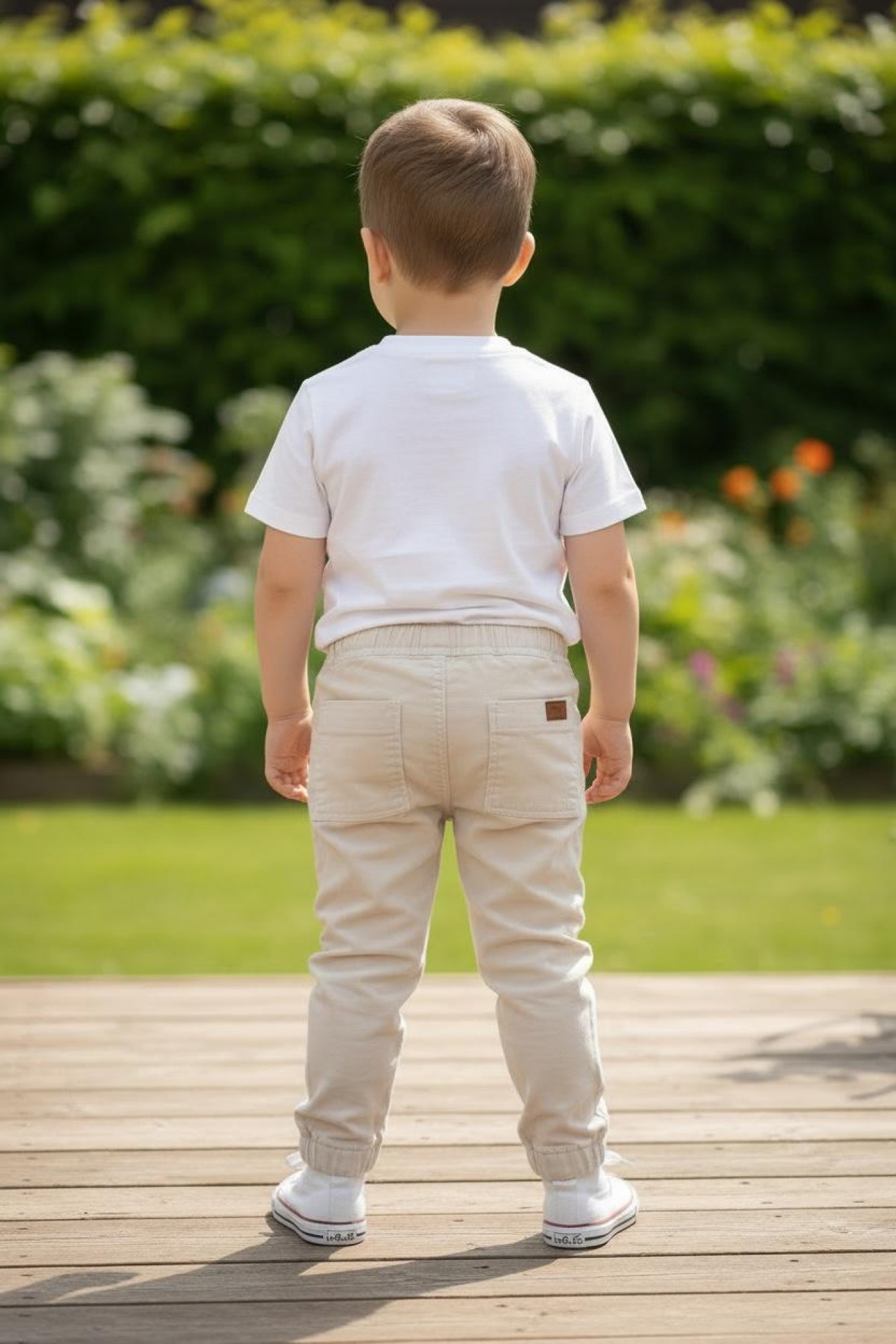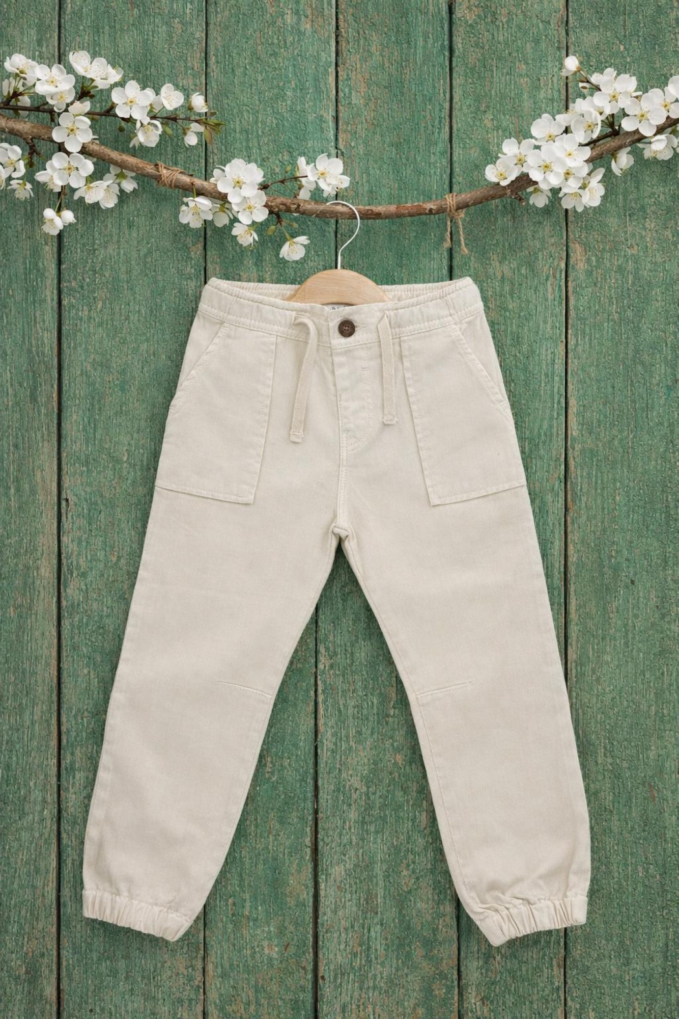 Boys' jogger pants in a stylish sand color, a comfortable and versatile garment perfect for everyday wear. Their simple and modern design makes them an ideal choice to pair with different t-shirts, polo shirts, or sweatshirts.