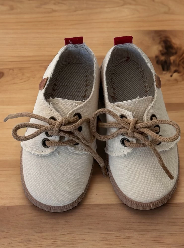 Made of beige linen with rubber sole and sand-colored laces. They are very comfortable and useful sneakers with a very cool design that is special to wear.