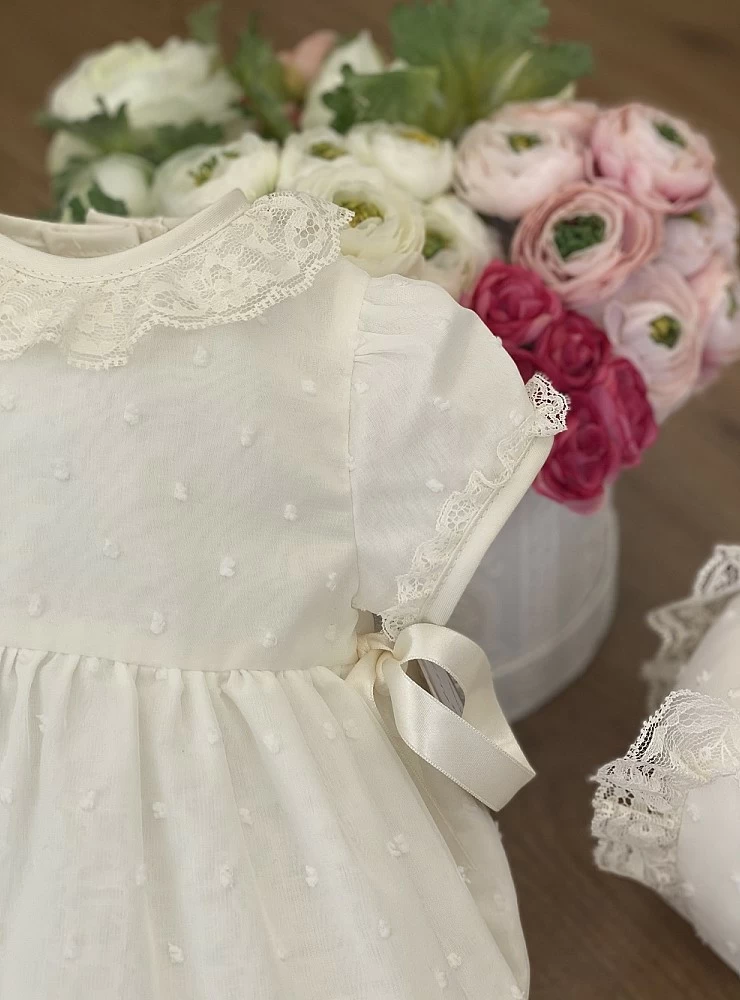Conjunto de bautizo Pelele y capota plumeti de tul