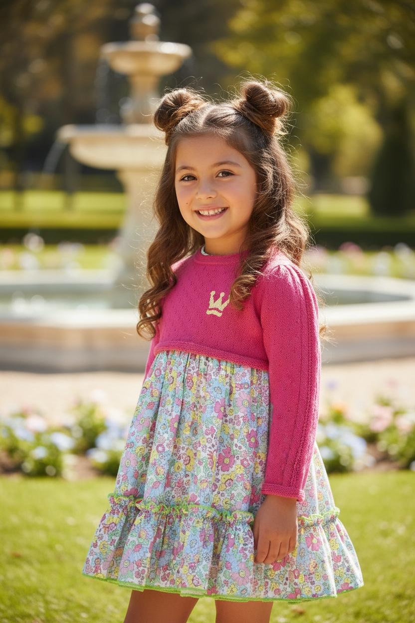 A girl's dress paired with a short jacket, creating a cheerful and eye-catching outfit perfect for spring and summer.