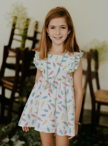 Made in aqua green viella with raw polka dots. It has printed dolls with embroidered lace baby collars.