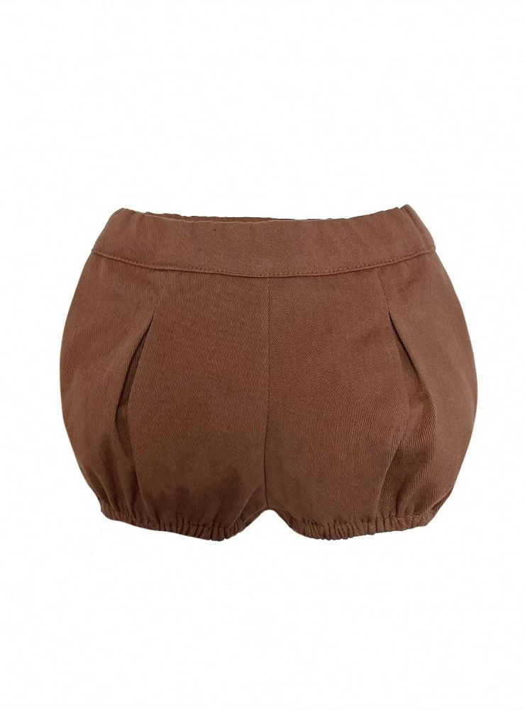 Viella blouse with baby neck and petroleum-colored checks, camel-colored bloomers