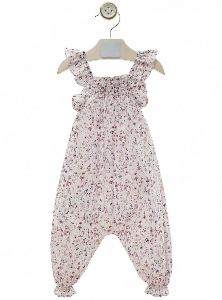 Made of poplin with Liberty flowers in lilac and pink tones, it has a butterfly strap.