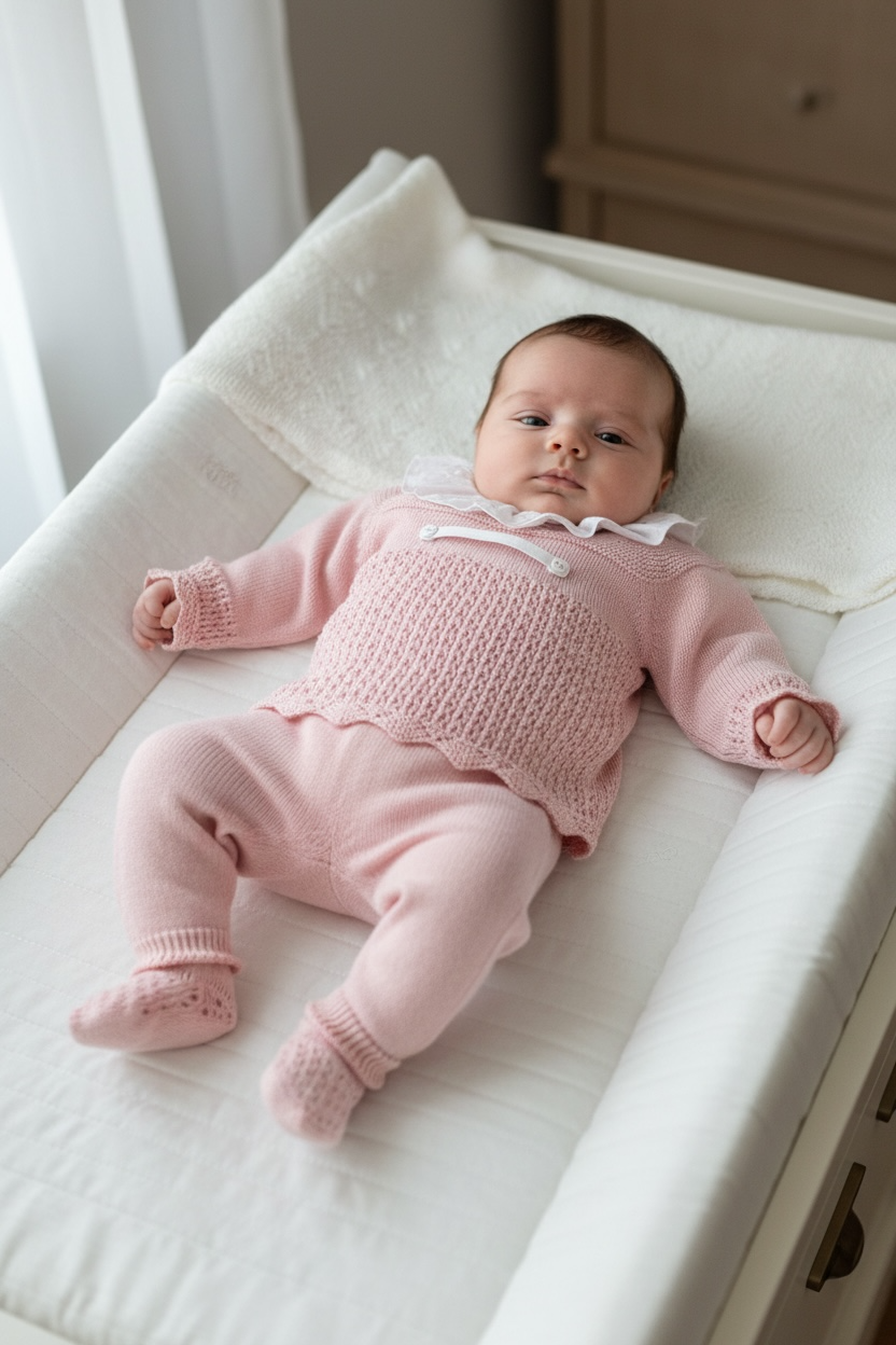 Baby girl's summer set in a soft and delicate dusty rose knit, perfect for the first few months.