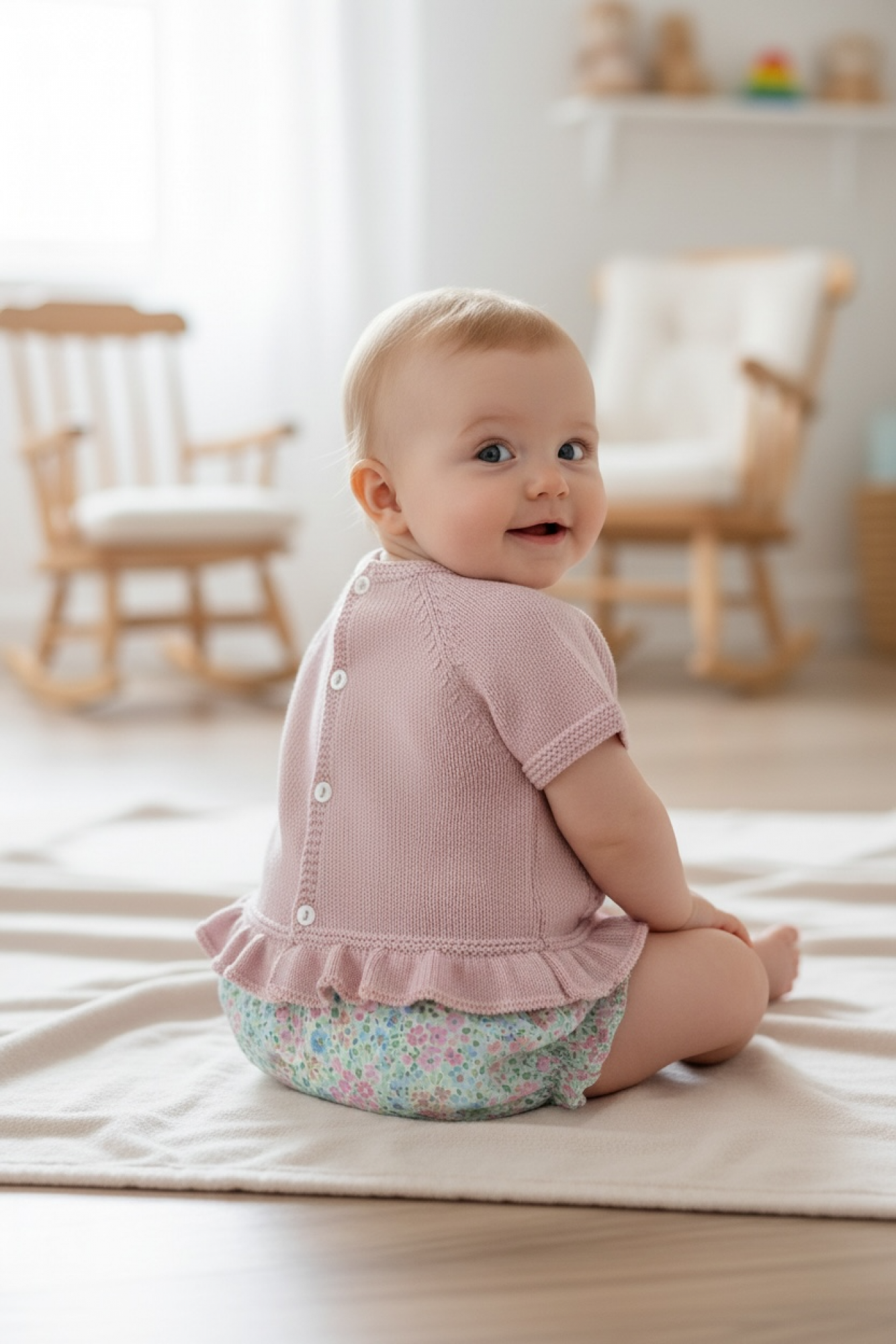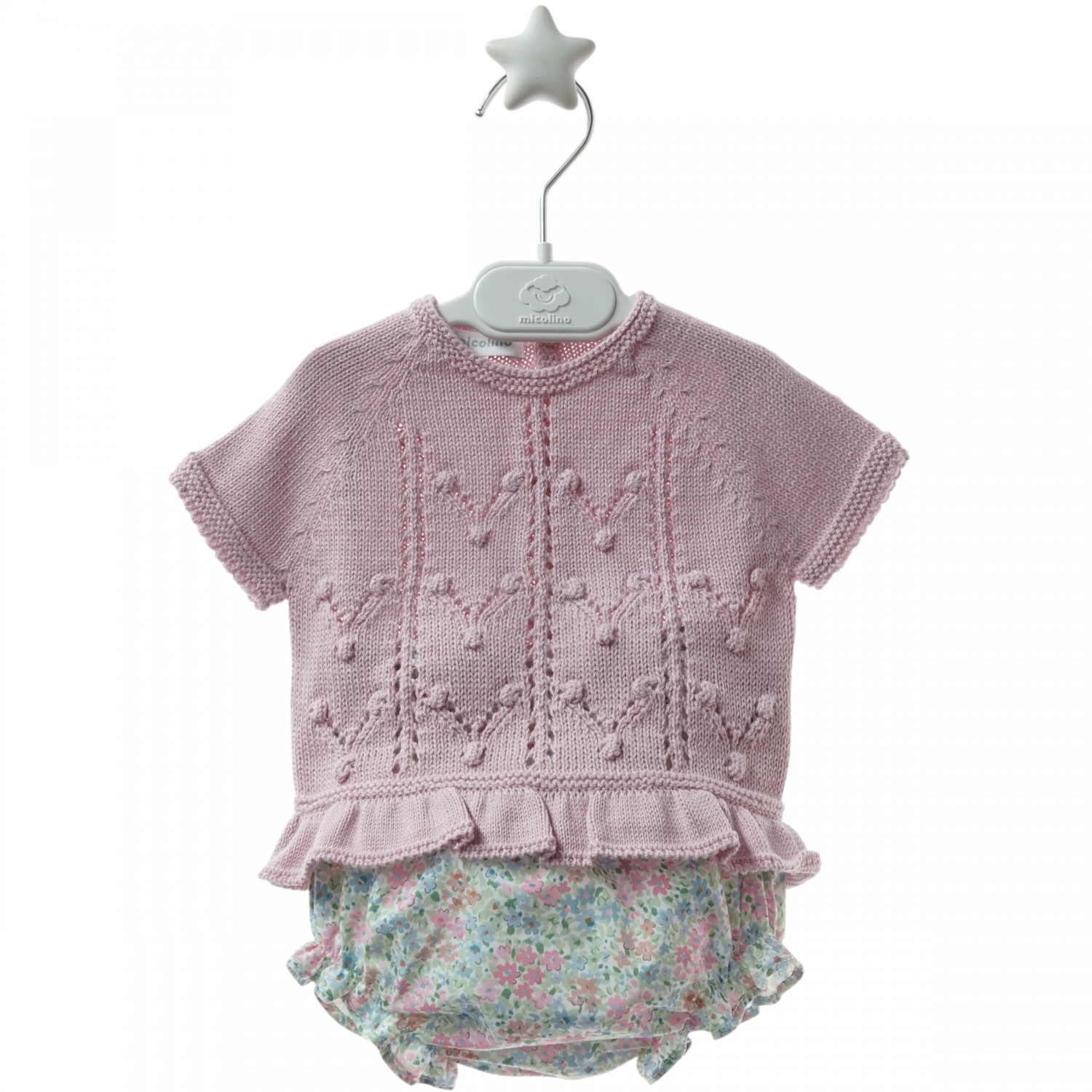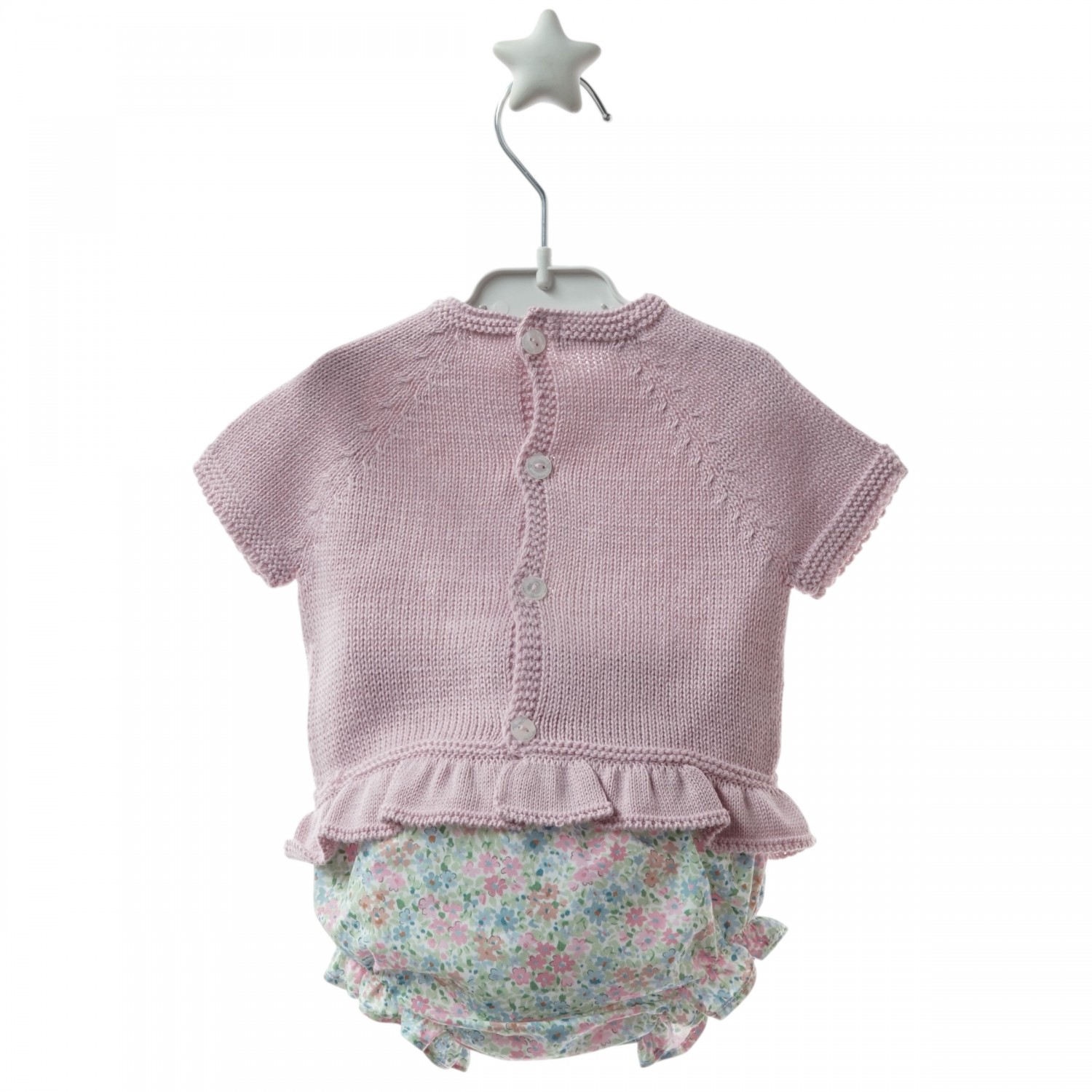 Anna Family Baby Set, consisting of a dusty rose knit sweater and matching floral print bloomers.