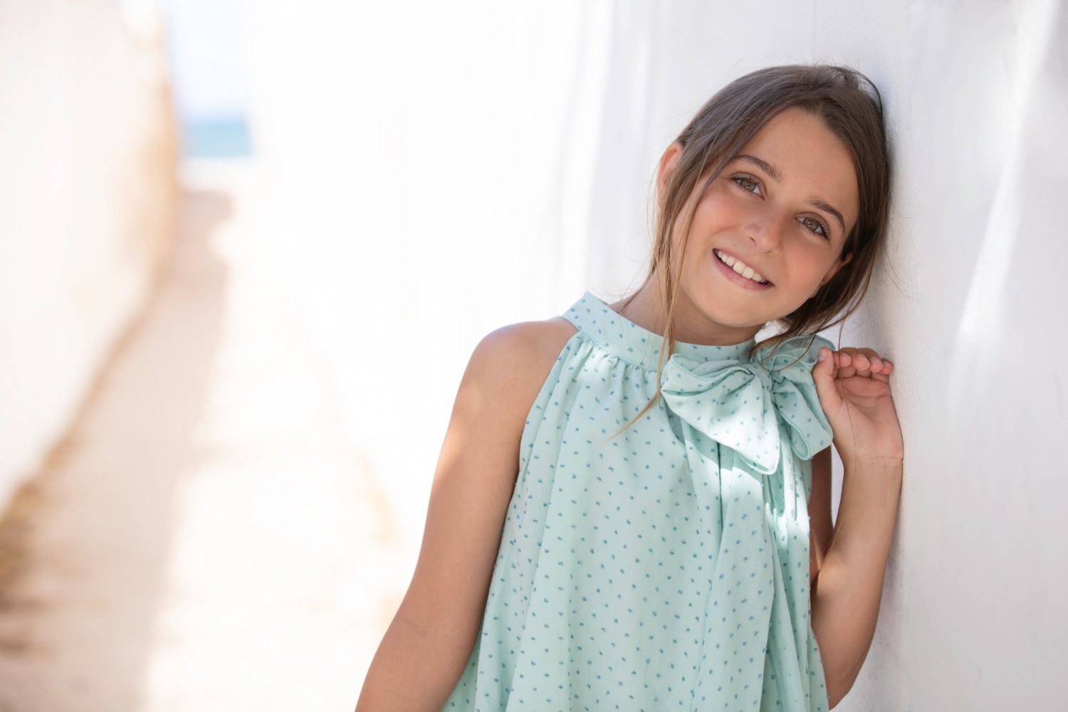Made in powdered green plumeti with a large bow as details on one side. Simple but very fine.