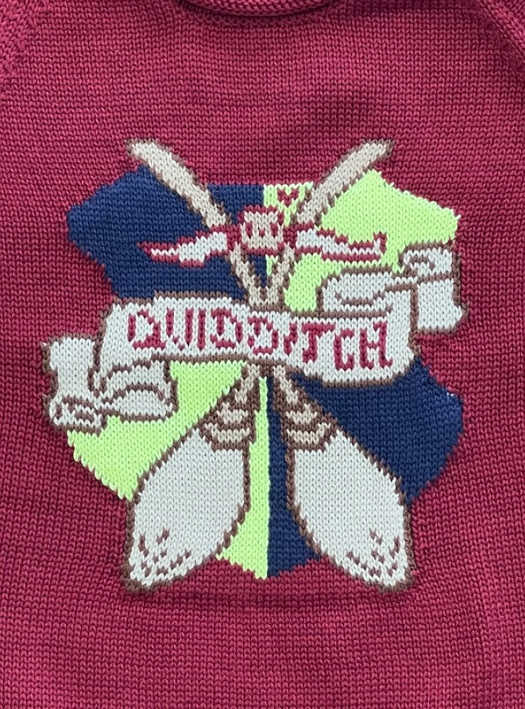Made in a point very similar to cotton, it does not itch or make balls. It is maroon in color with a nice drawing of the Harry Potter quidditch game.