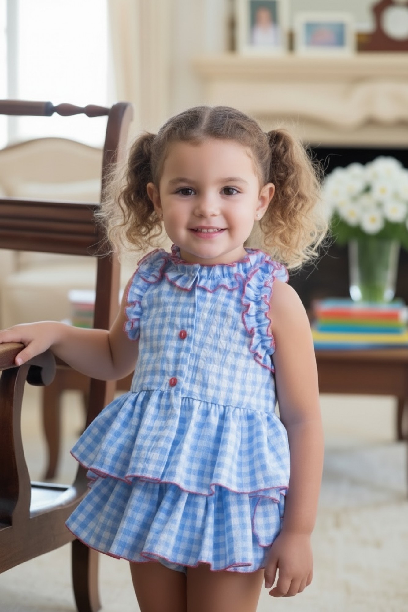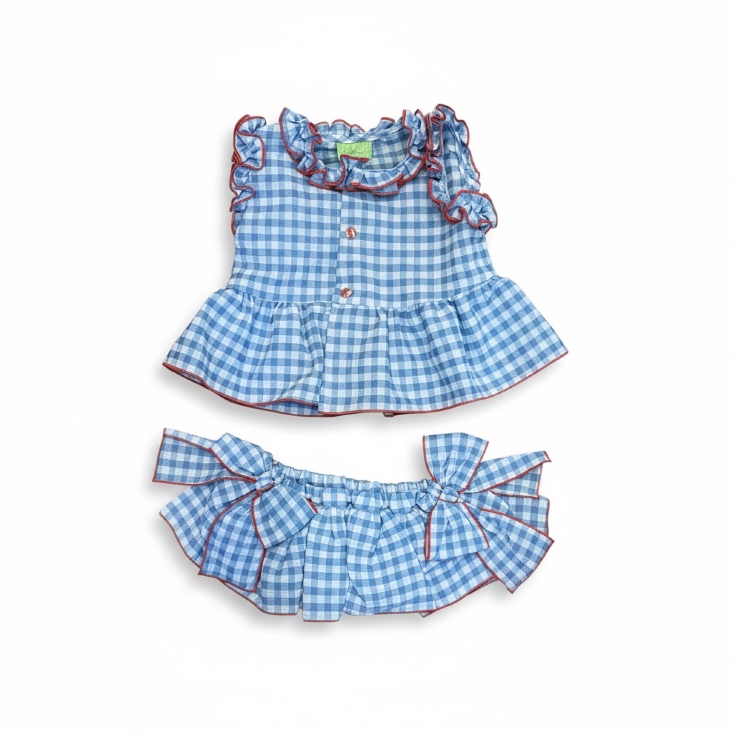 A lovely detail of side bows in the same gingham pattern makes the set even sweeter.