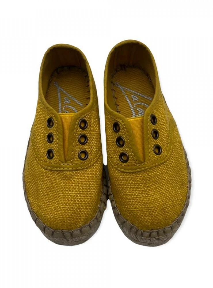 Elaborated linen color sand or mustard. It has a rubber sole and rope. Decorative holes with an interior comma to make it very comfortable to put on.