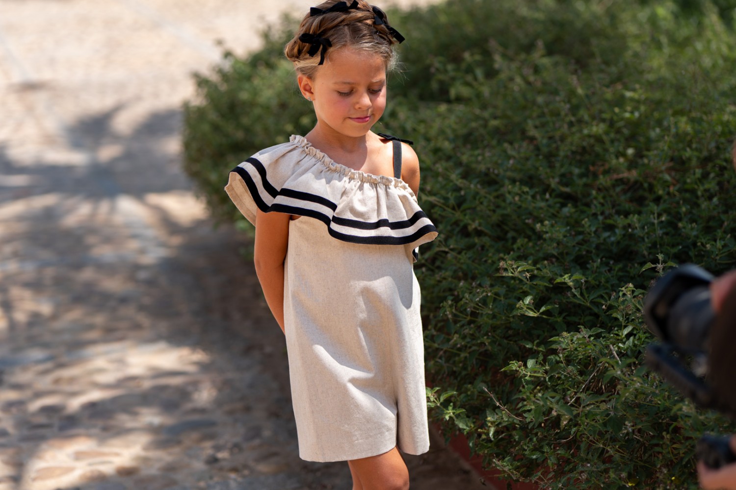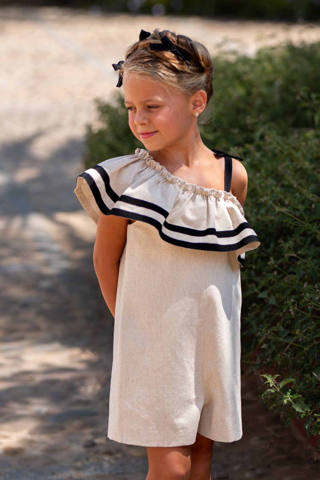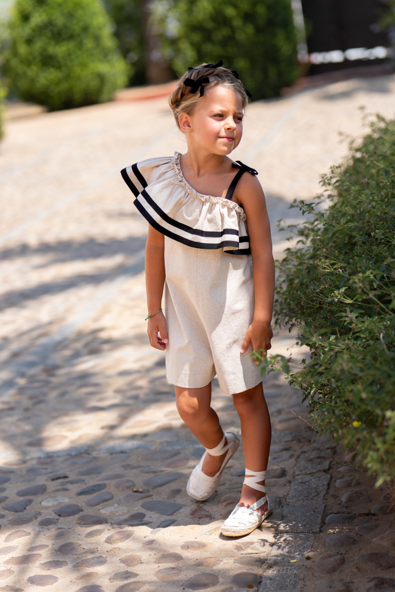 Girls' jumpsuit made from natural linen by the Alhambra Family.