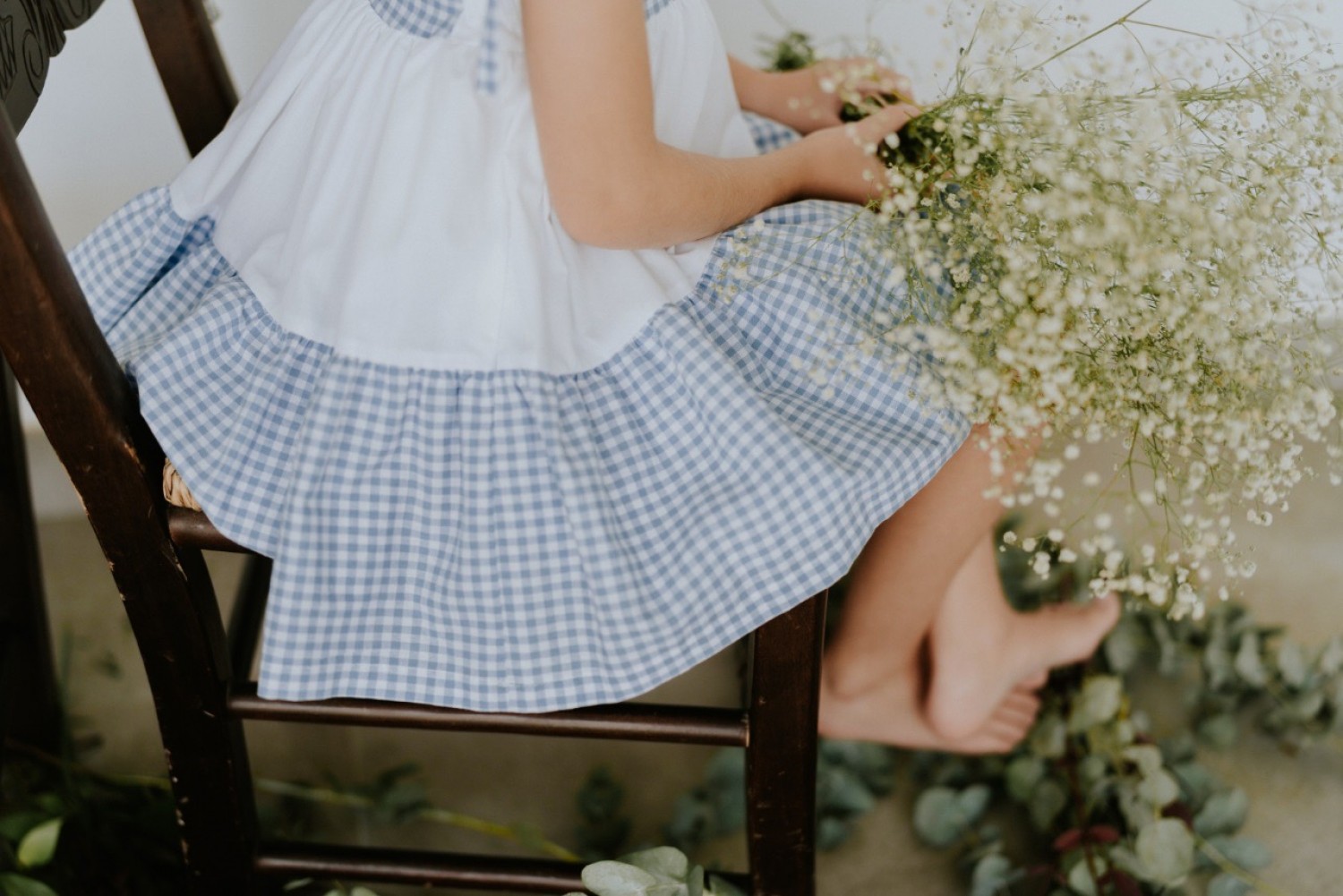 Made in white batiste and blue vichy square. Simple but very pretty.