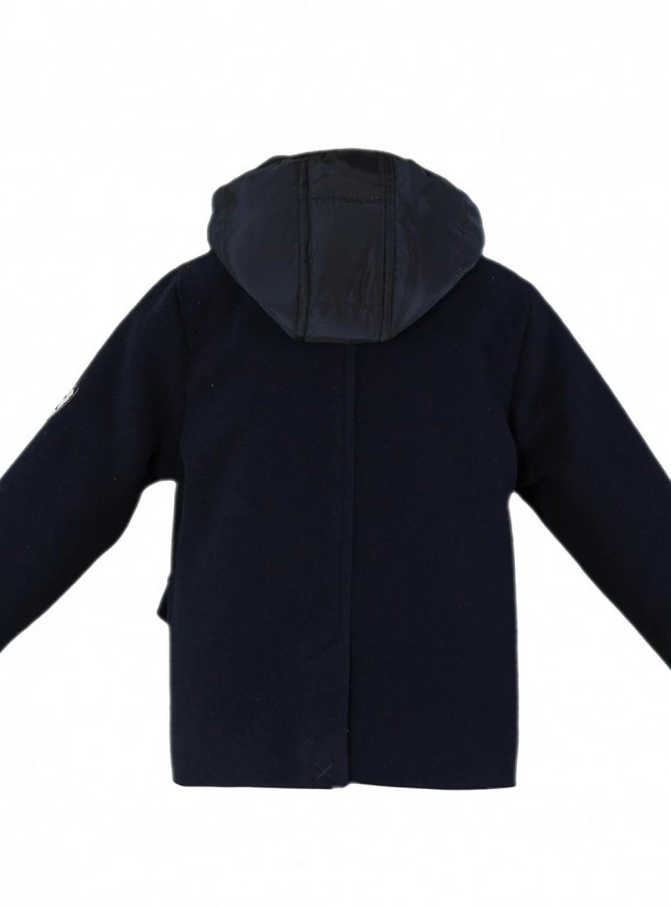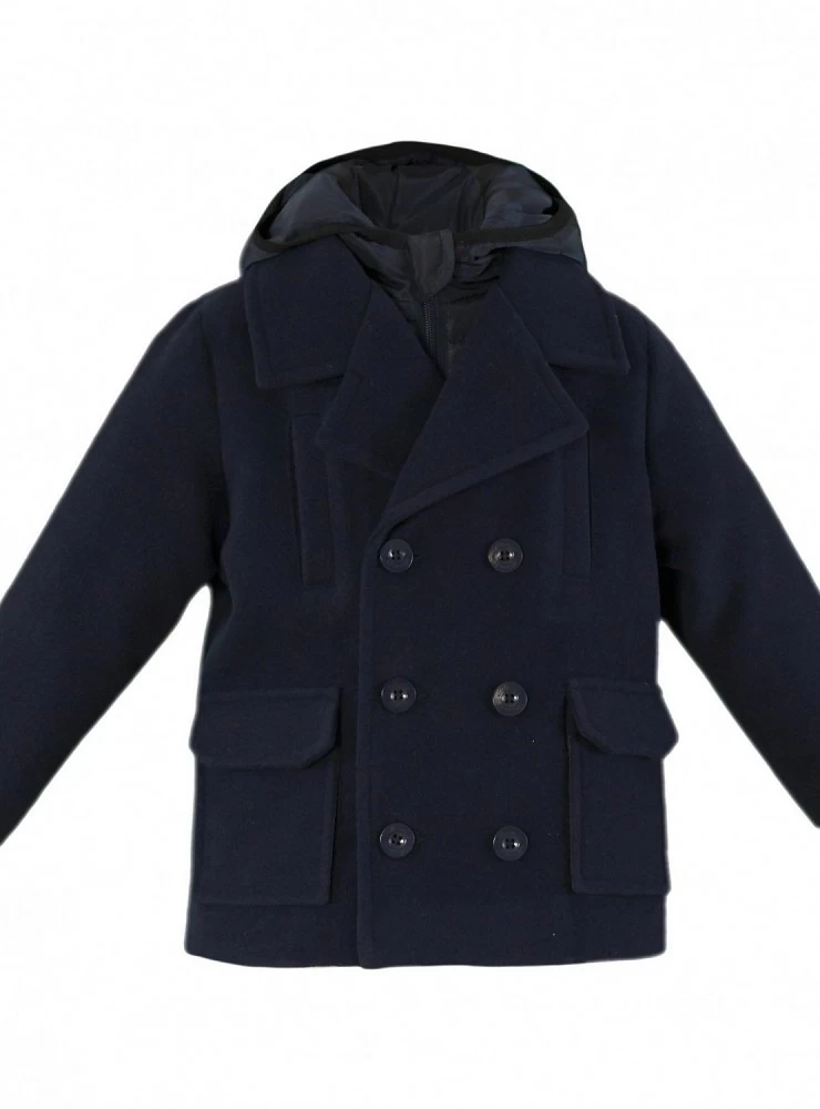 They are two pieces. Double-breasted cloth coat and padded raincoat type inner coat.
