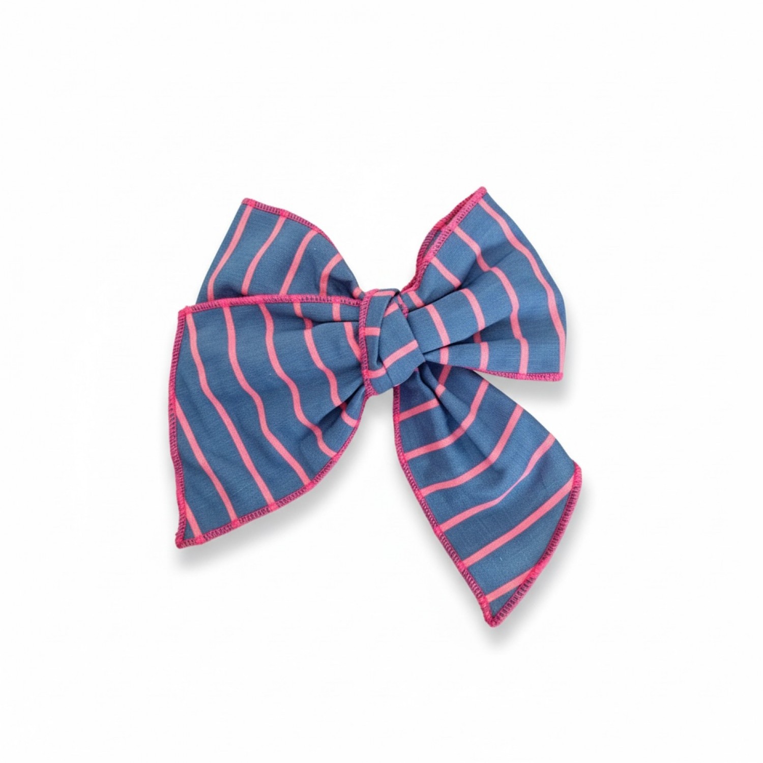 The bow's edge is finished with fuchsia pink trim that frames the silhouette and provides a striking contrast. The central knot features the same wavy striped print, seamlessly integrating the design.