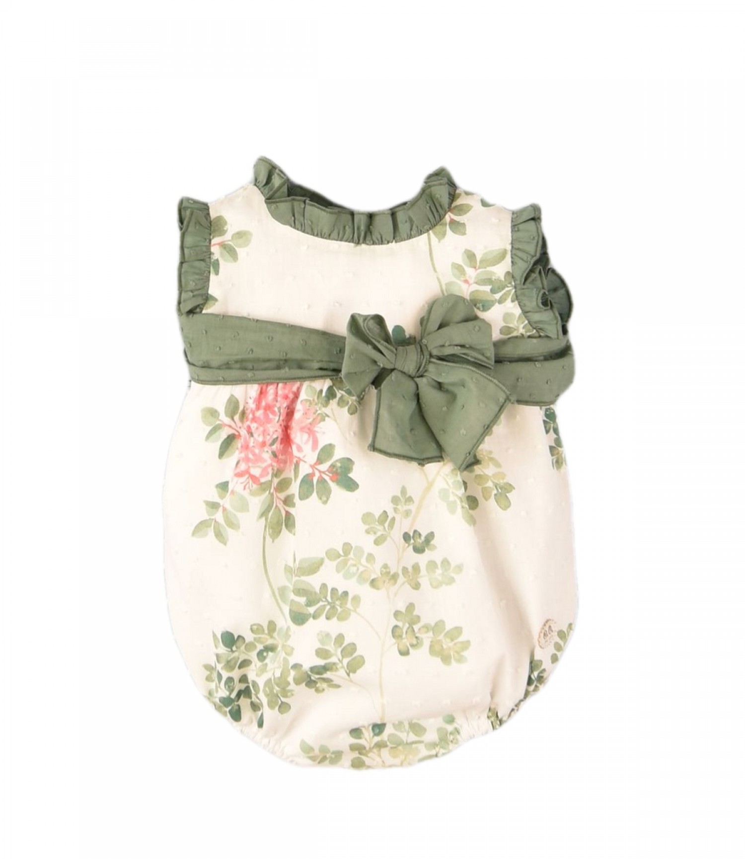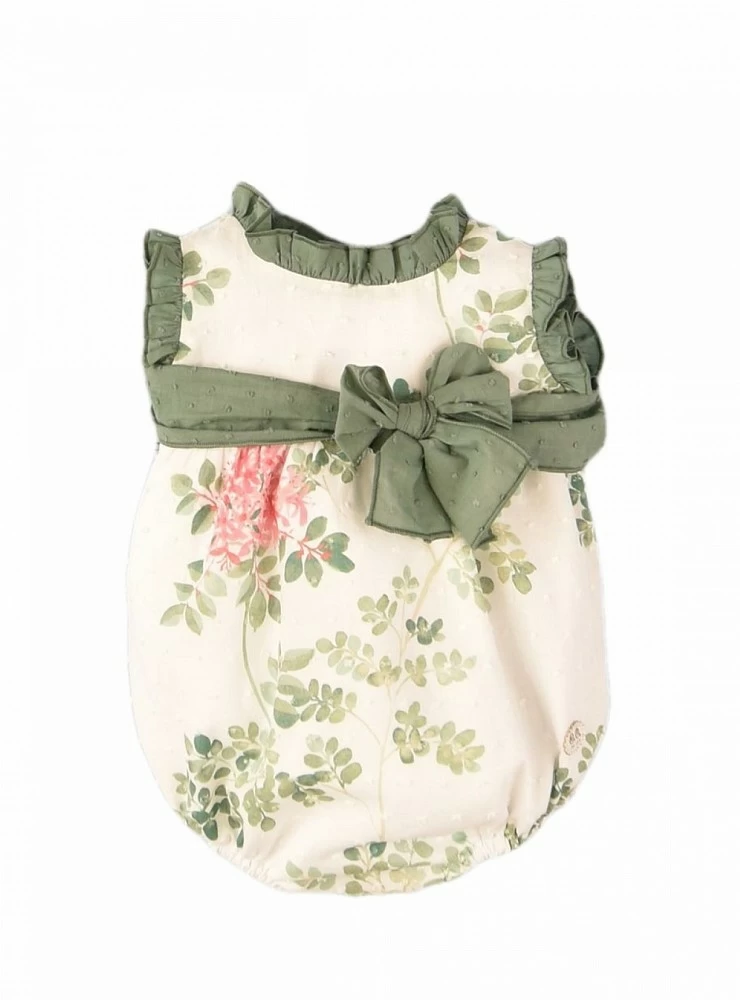Made of printed plumeti in shades of green and pink. Nice bow in the center