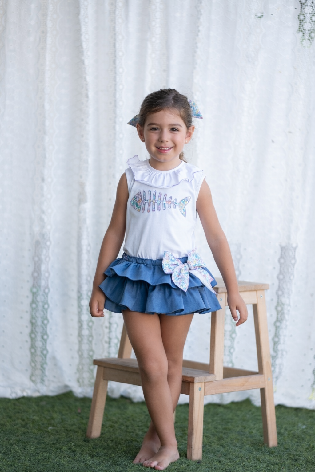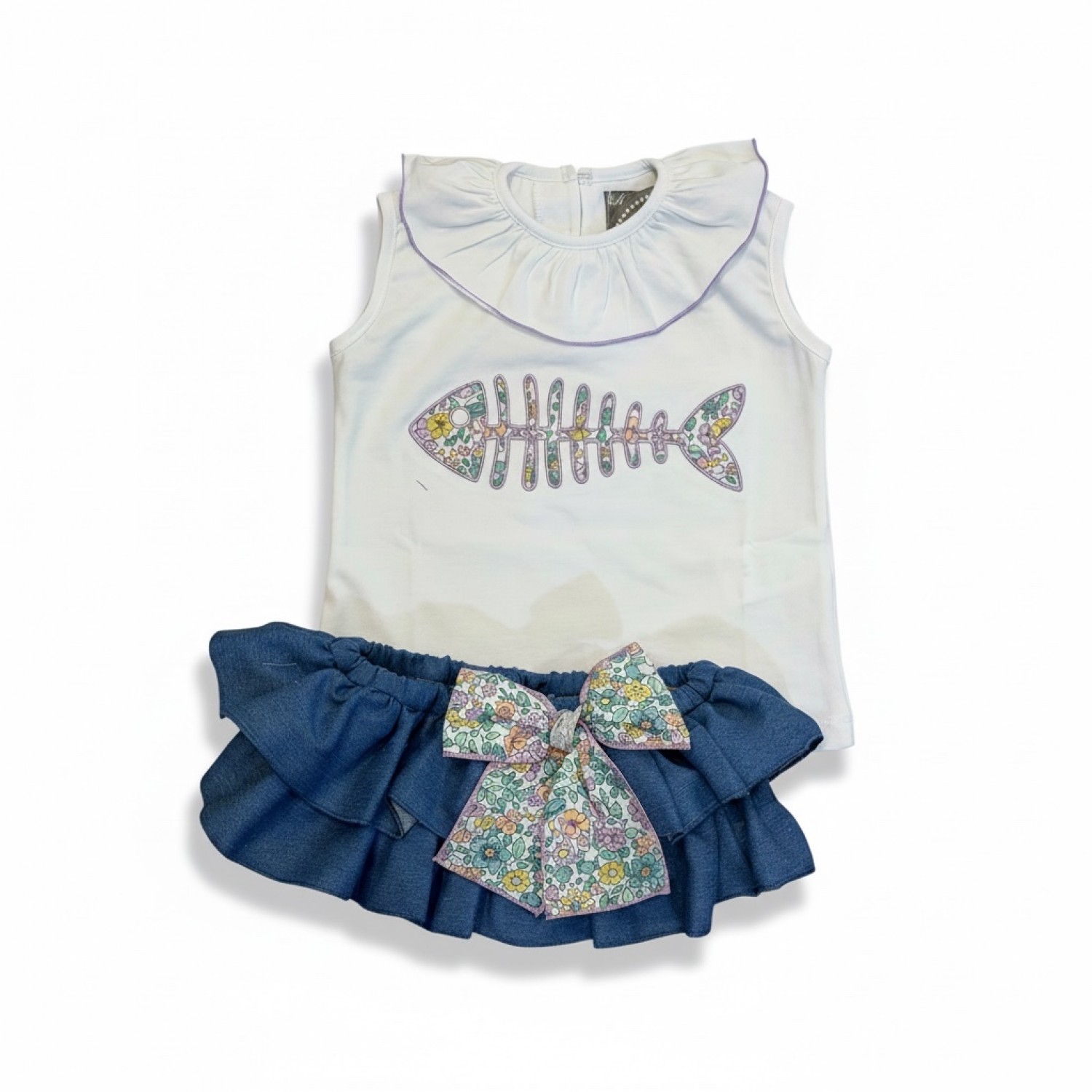 Sleeveless top and denim skort set, super comfortable and with a unique touch.