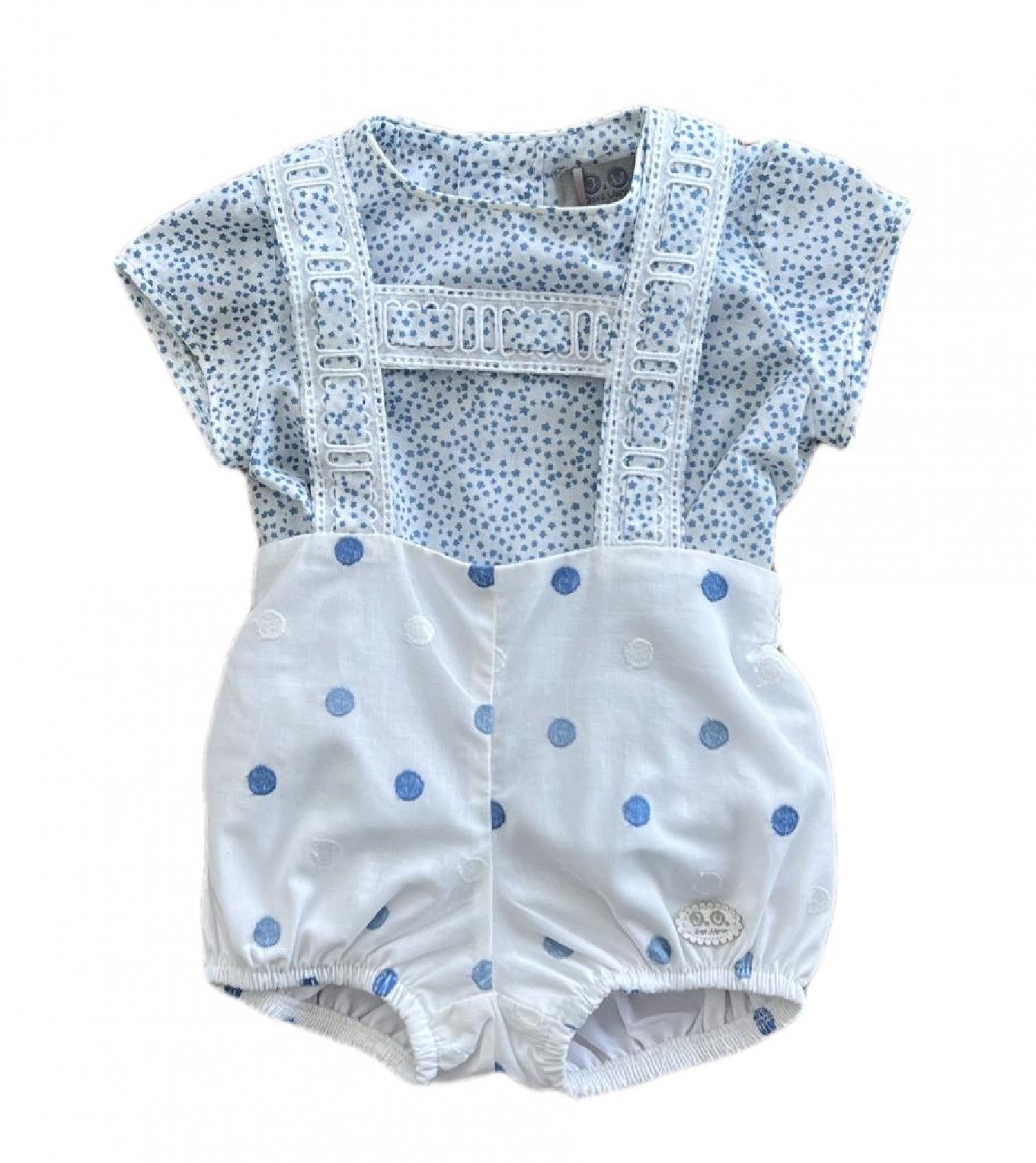 Composed of frog with straps. White with bodoques embroidered in blue and white. It has straps with bobby pins in a matching print with the azuón star shirt. Very original