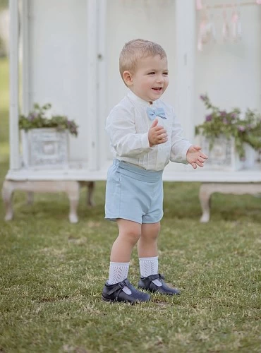 Set for boy. Yellow polo shirt and Gray Vichy pants.