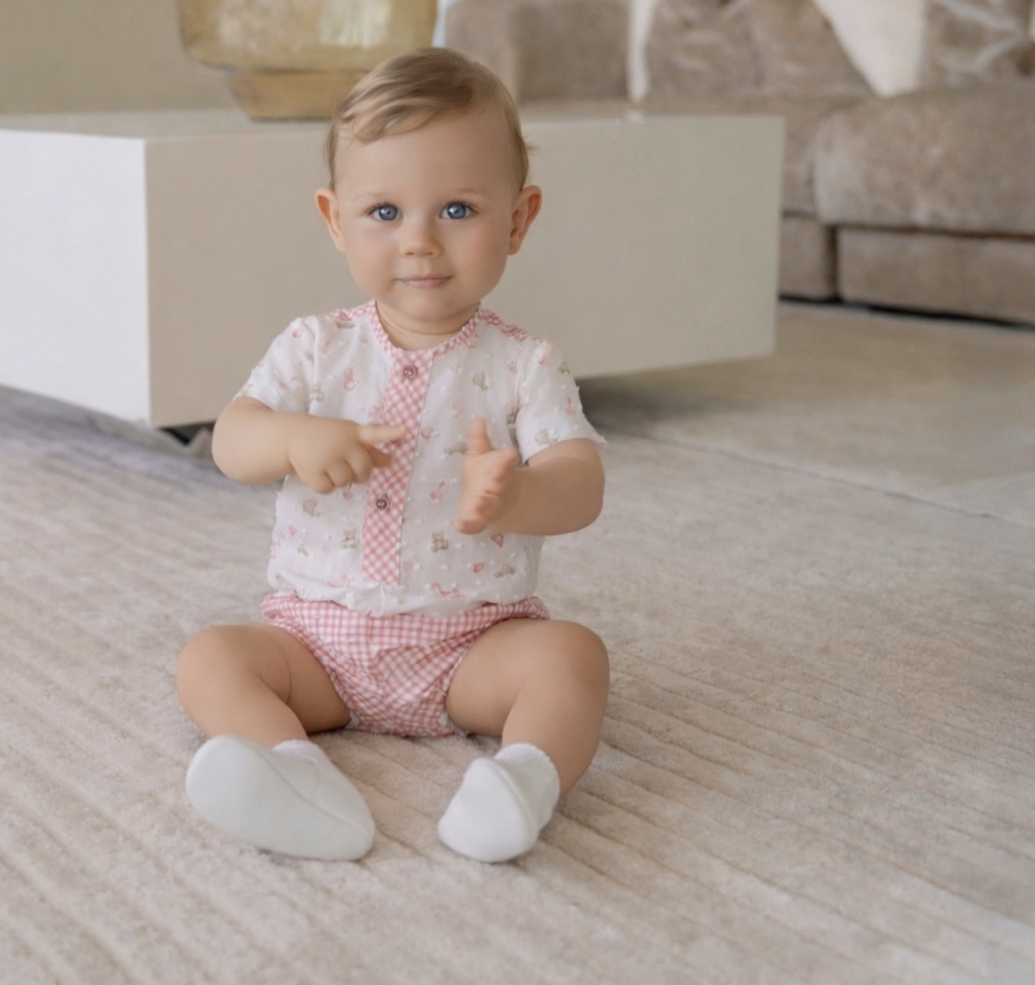 Boys' outfit from the Strawberry and Cream Collection, perfect for Spring/Summer.