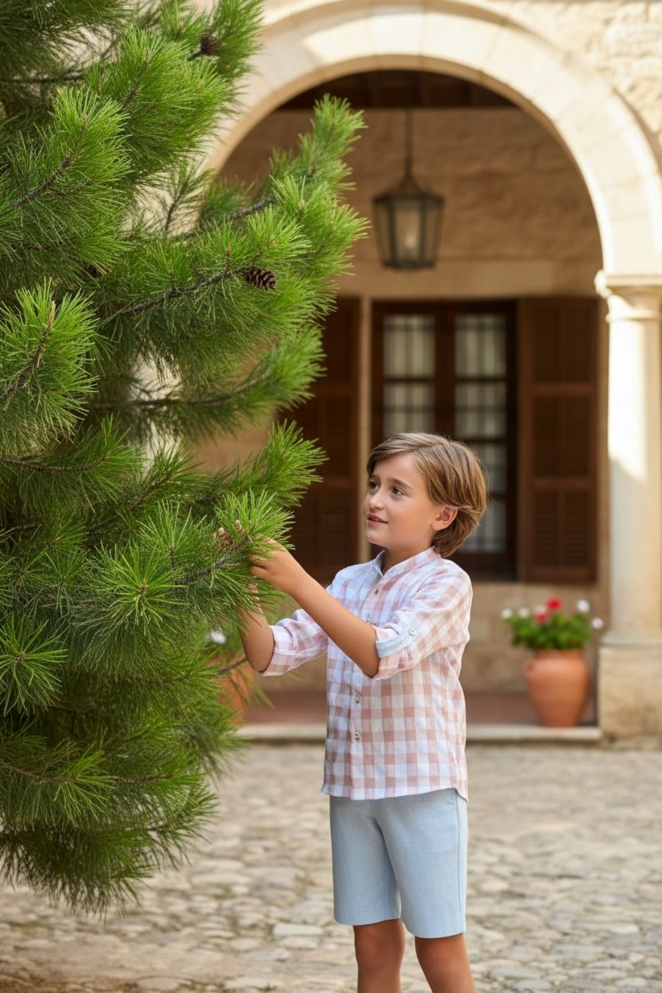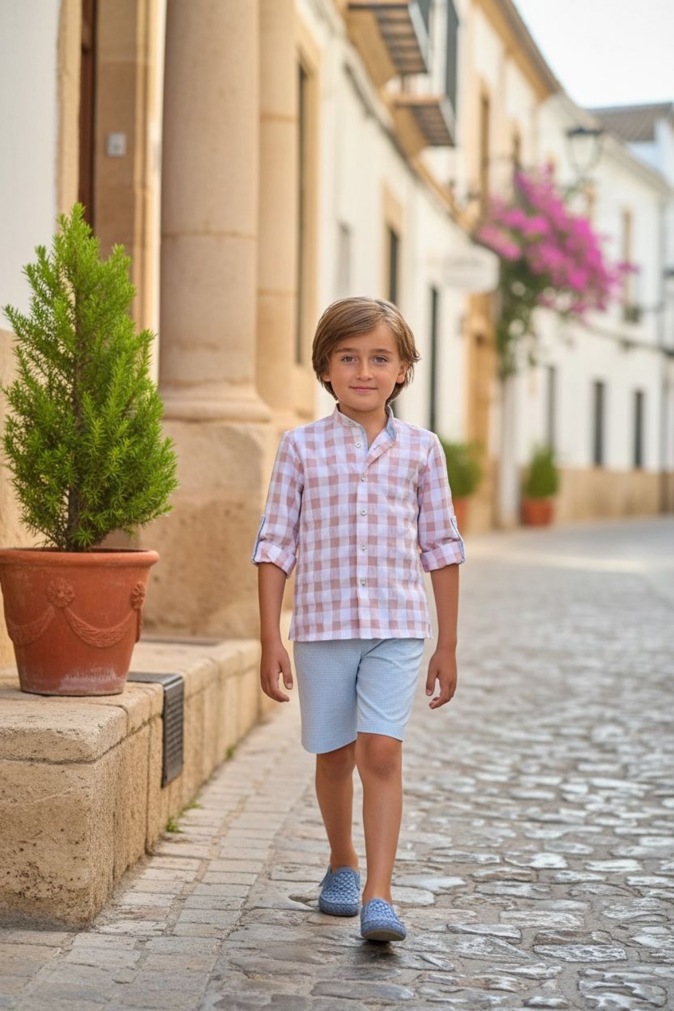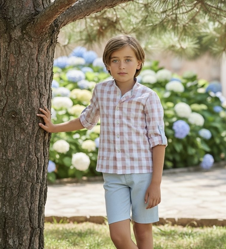 Boys' set consisting of a long-sleeved shirt and shorts, ideal for smart and fresh seasonal looks.