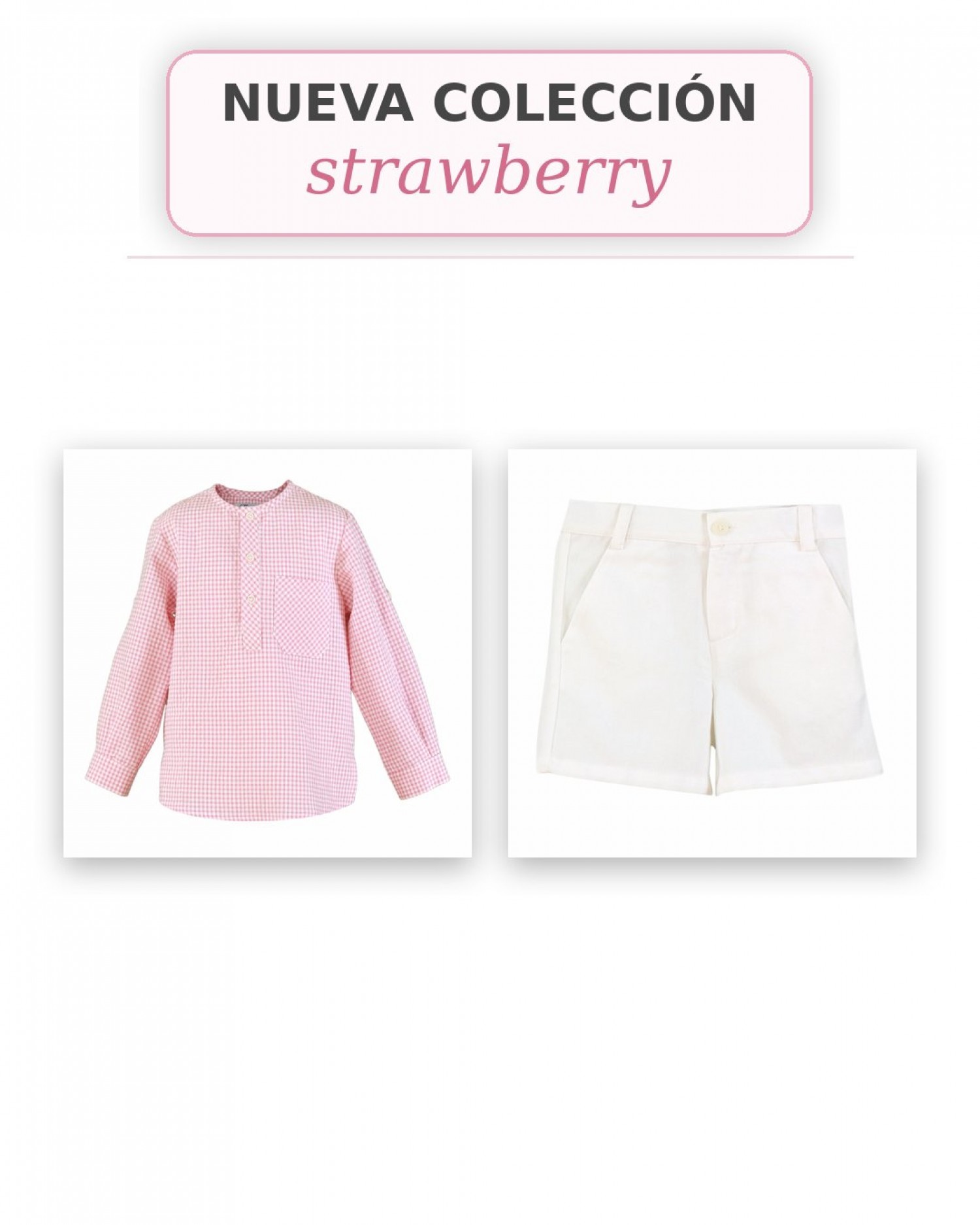 Strawberry Family Boys' Outfit in Pink and White, Perfect for Summer and Special Occasions