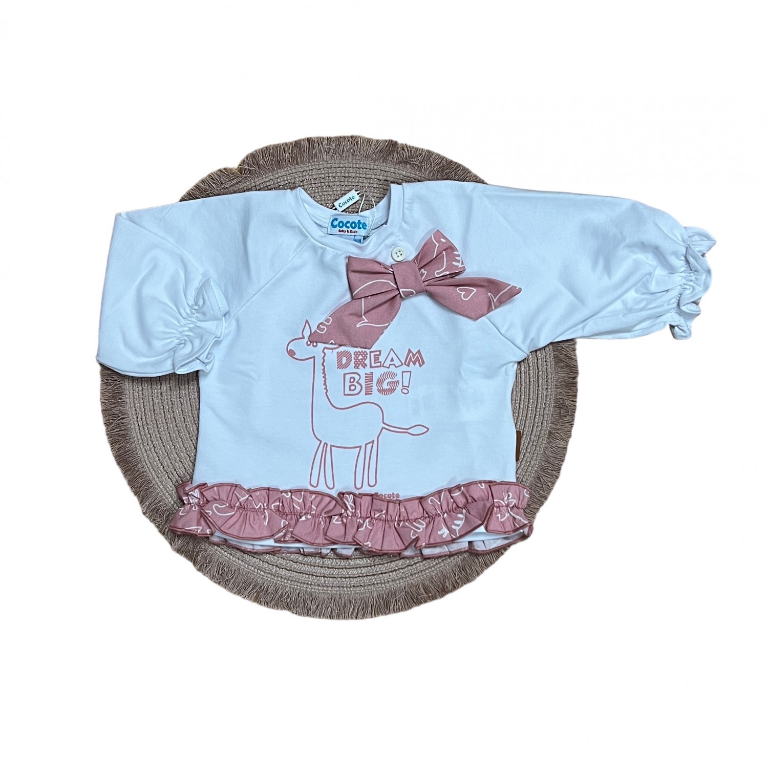 White cotton with lycra. It has details in powdery pink. Tie and boards.