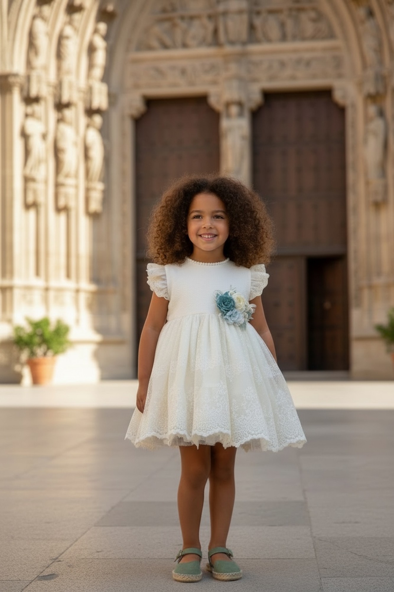 Embroidered tulle dress for arras or ceremony.