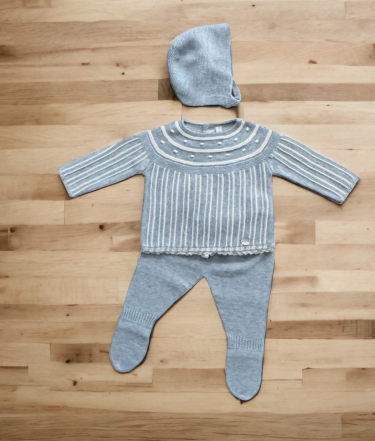 Sweater with leggings and hat in plain knit with bobbles
