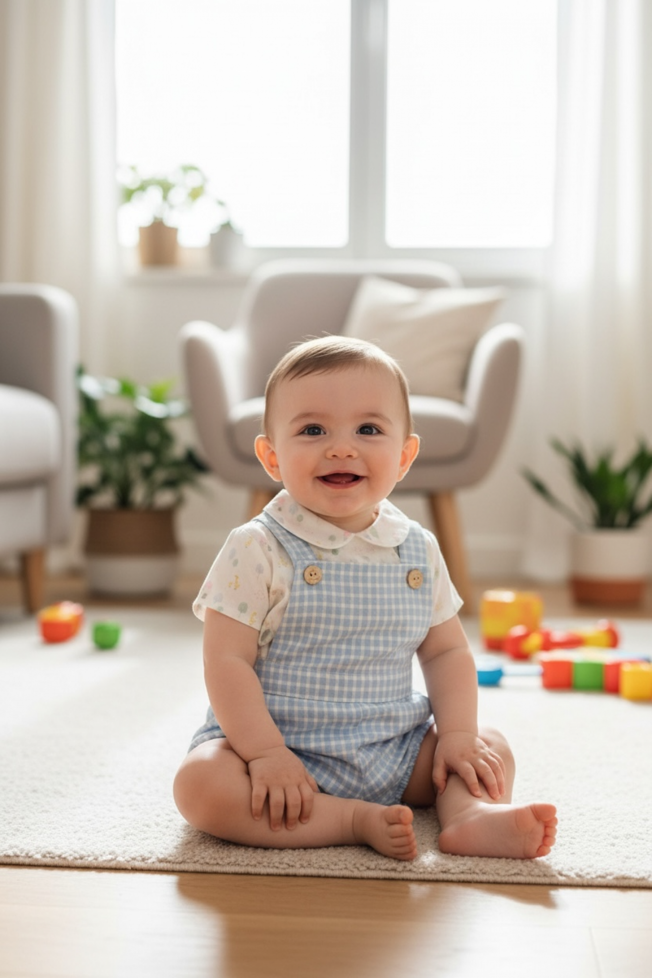 Two-piece set for children, dungarees and blouse, Delfín collection