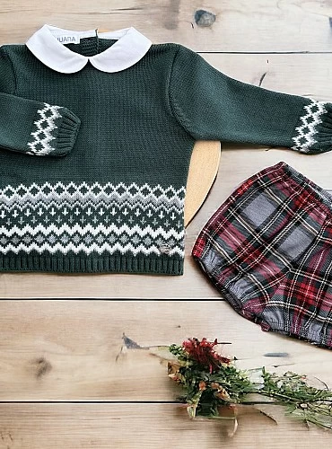 Made of 100% cotton, this white bodysuit features a Lyberty floral collar and matching panties.