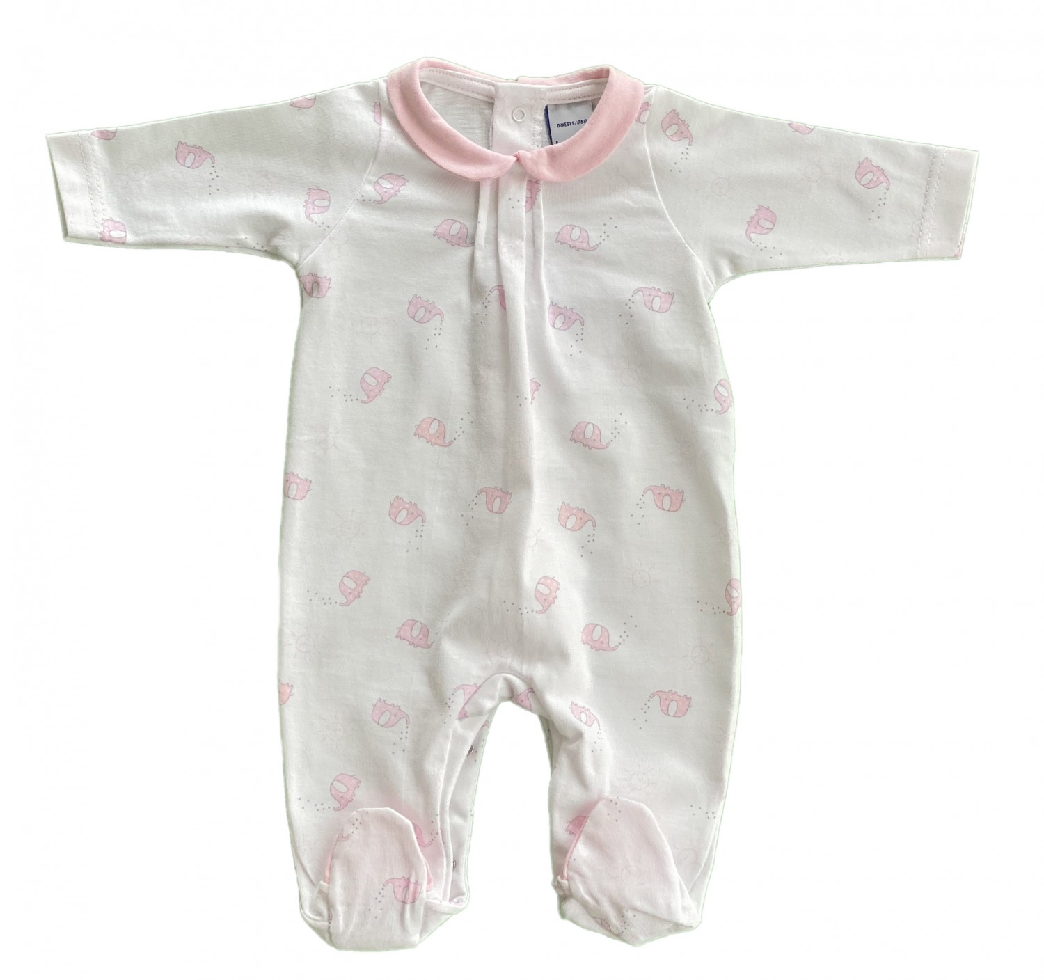 Unisex cotton romper, elephants print. Three colors. P-Summer