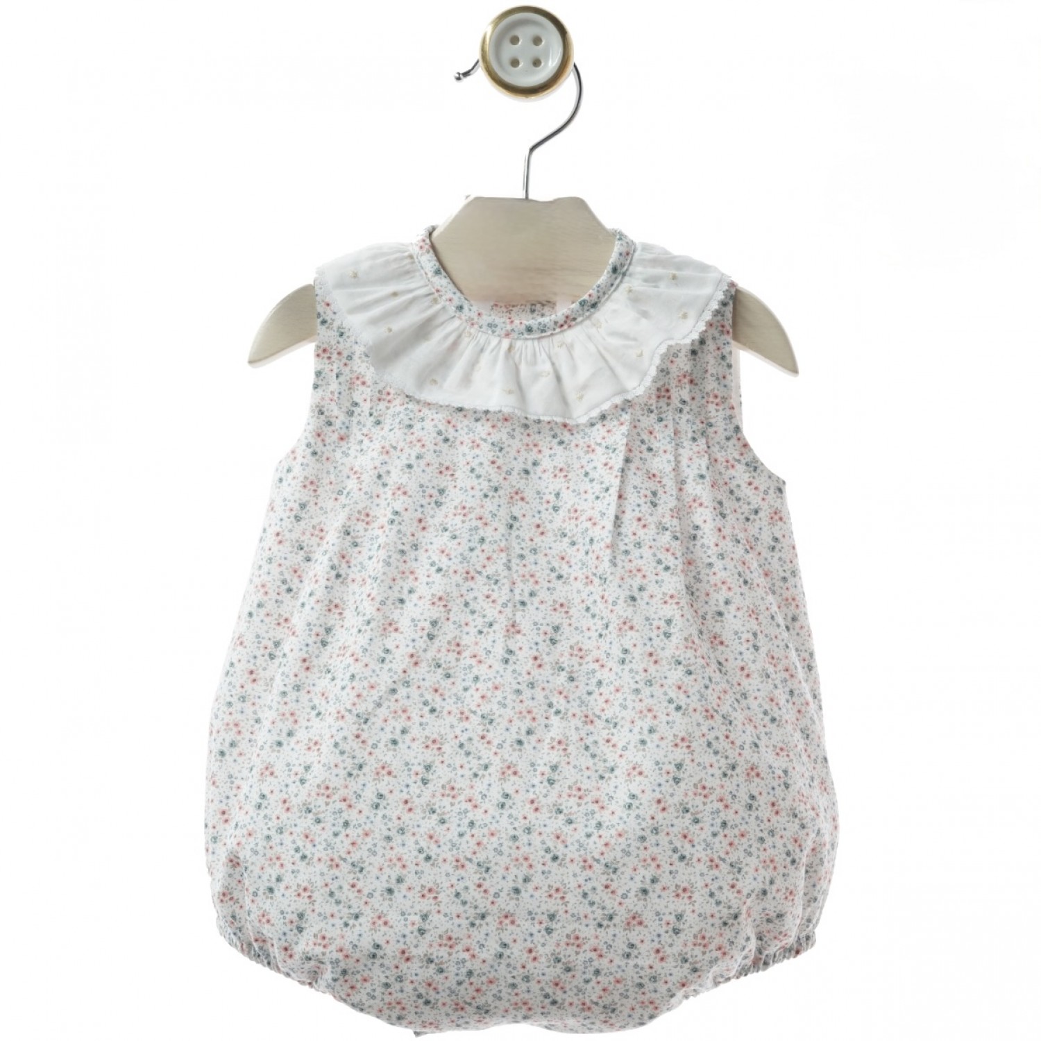 Unisex romper made from soft, lightweight fabric with a delicate floral print from the Azulejo collection, ideal for the warmer months.
