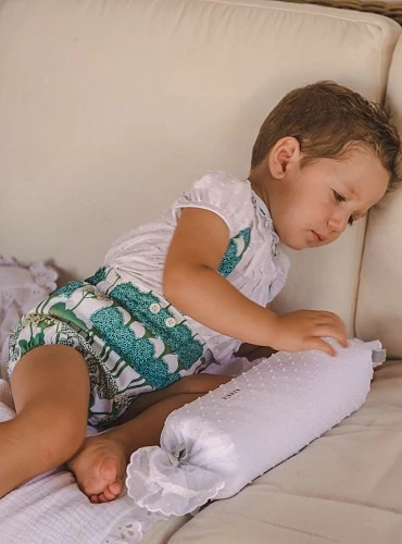 Made from 100% cotton knit in two colors. Powder pink or aqua green