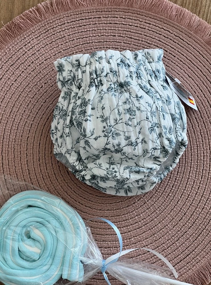 Tiene un bonito estampado ramilletes en azul plomo con un fino forro interior.
