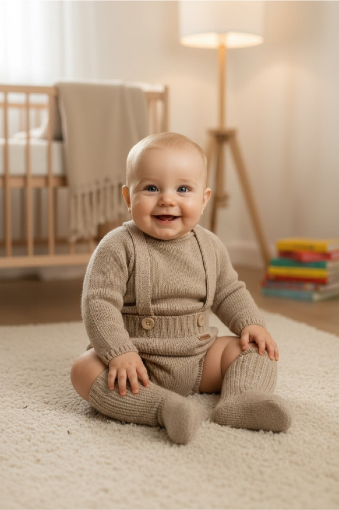 Unisex romper and sweater set in sand color, made of Italian Merino wool