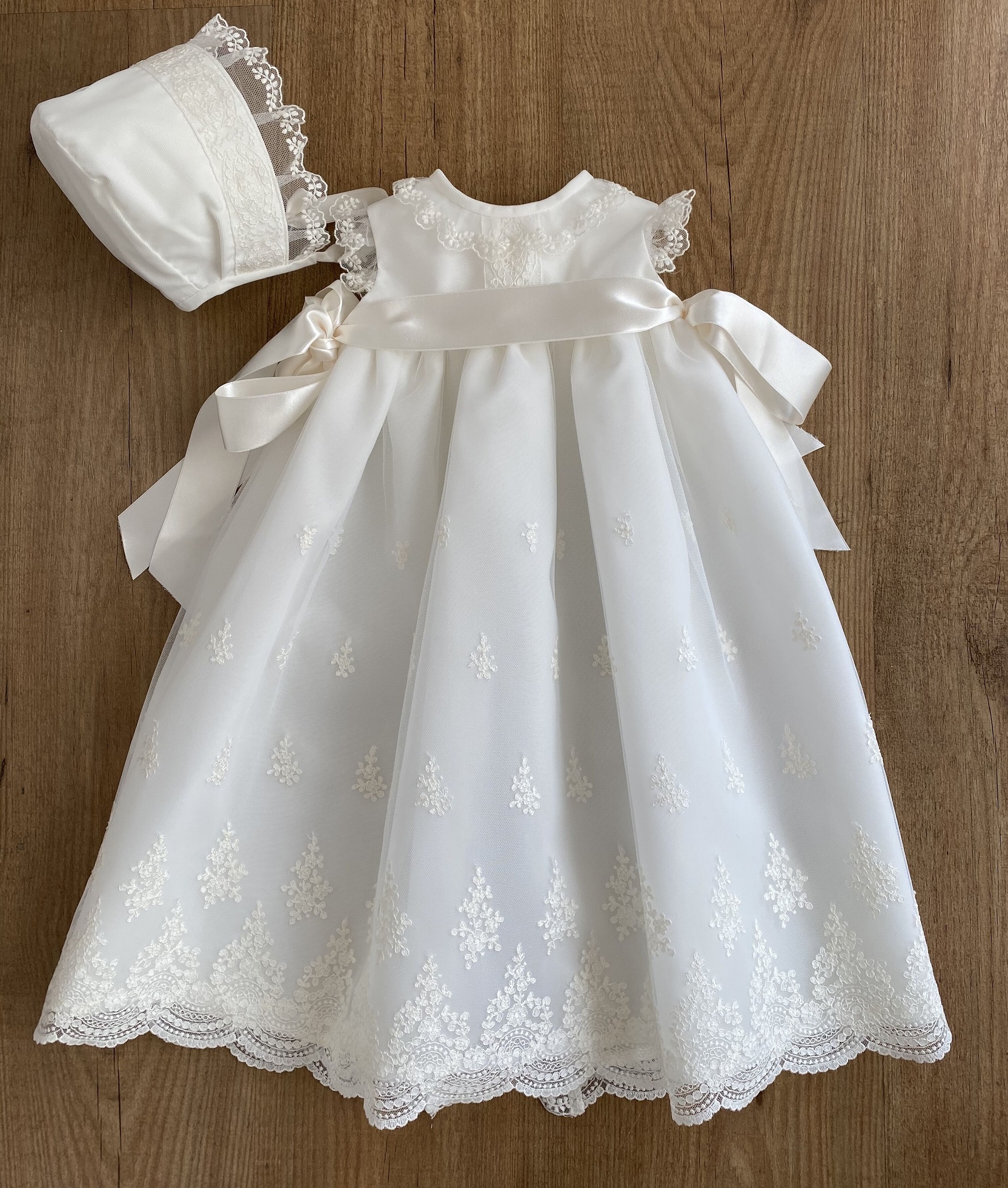 It is made of embroidered tulle with waves on the hem, it is wonderful Sizes 3 and 6 months