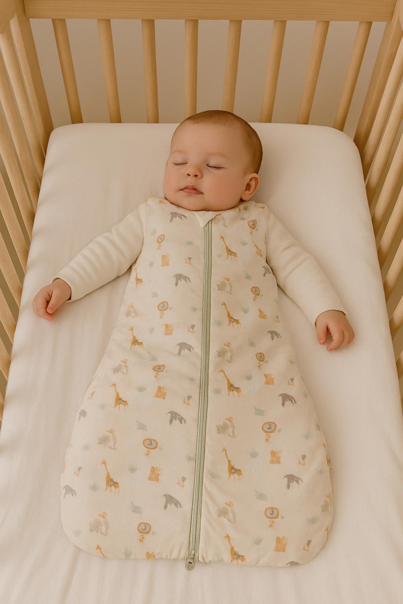 Baby sleeping bag in 100% cotton knit, soft and cozy.