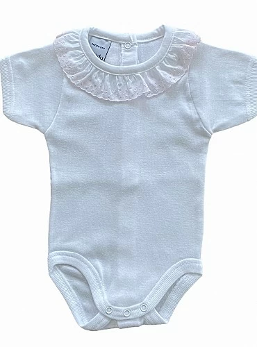 Made of white bambula with baby collars finished with a table in the same fabric. Perfect to combine with anything.