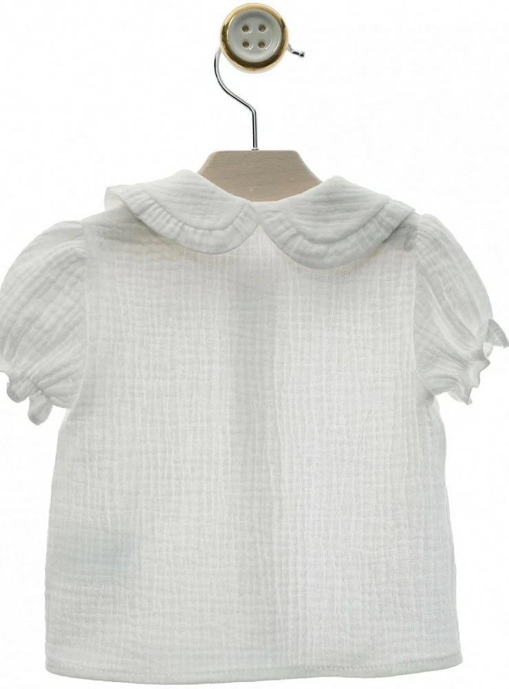 Confeccionada en bambula blanca con cuellos bebé rematados con tabla en la misma tela. Perfecta para combinar con cualquier cosa.