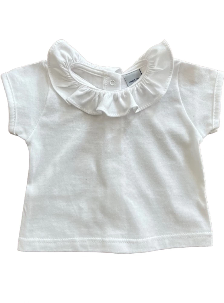 Blusita blanca de algodón con cuello volante.
