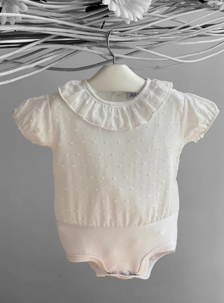 Body unisex de plumeti blanco en marga corta