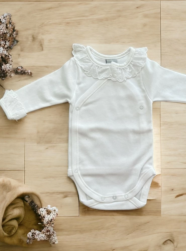Body Cruzado de Manga Larga, con cuello puntilla.