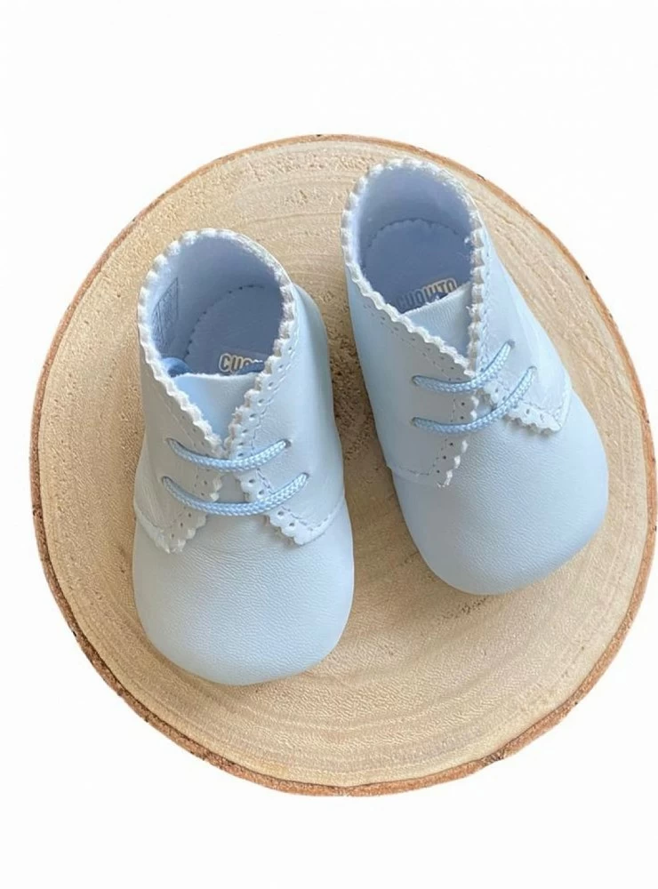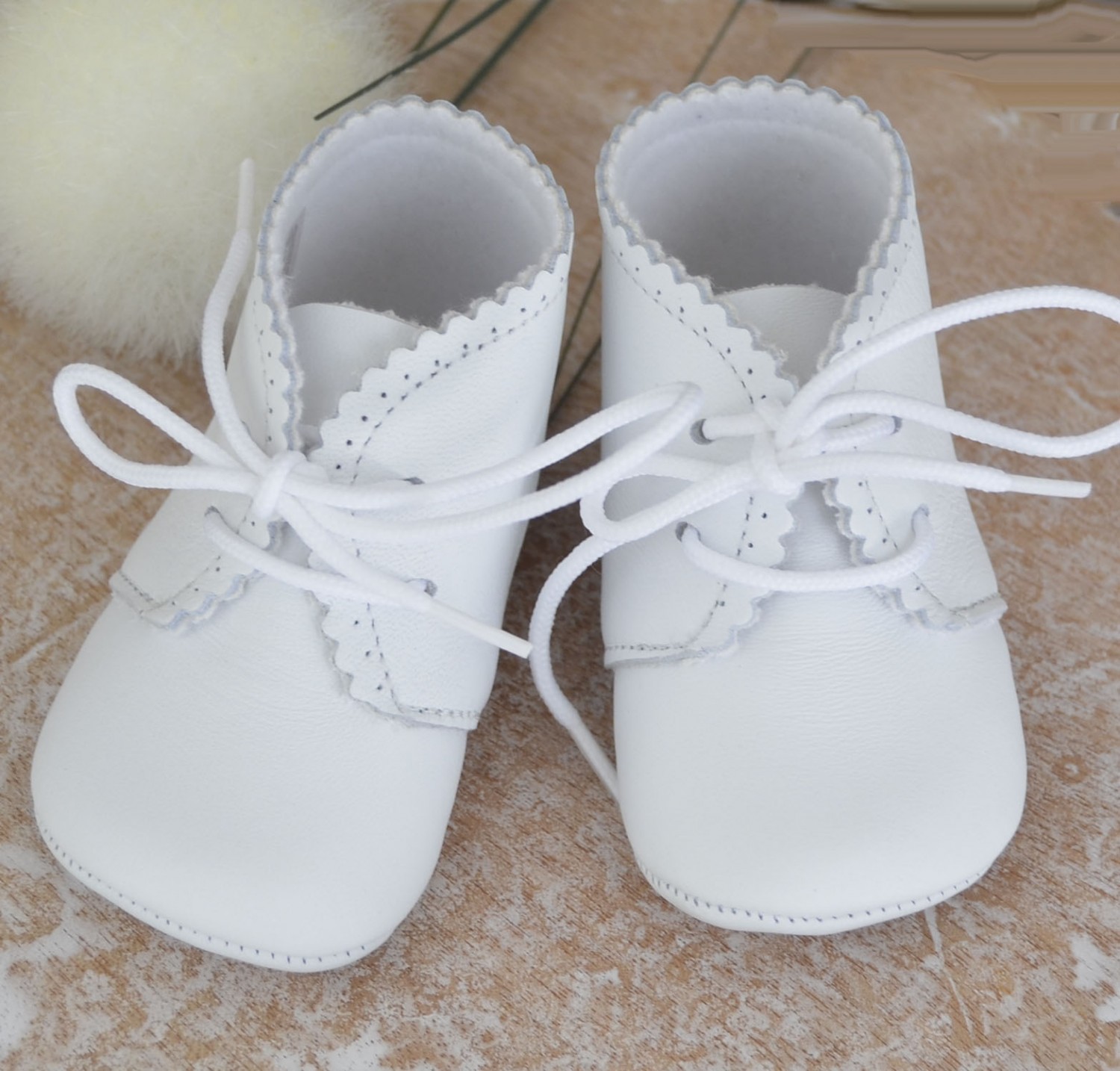Es perfecto para bautizo o vestir. En piel blanco, celeste o beige. Muy cómodo y fino