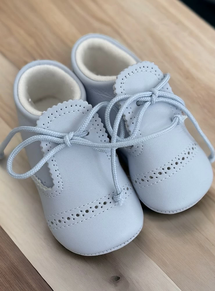Zapatito unisex piel nacar con puntillas. Especial Bautizo