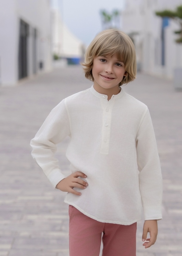 Manga larga con puño, perfecta para combinar con bermudas, pantalón largo o conjuntos de ceremonia, creando un look delicado y con mucho gusto.